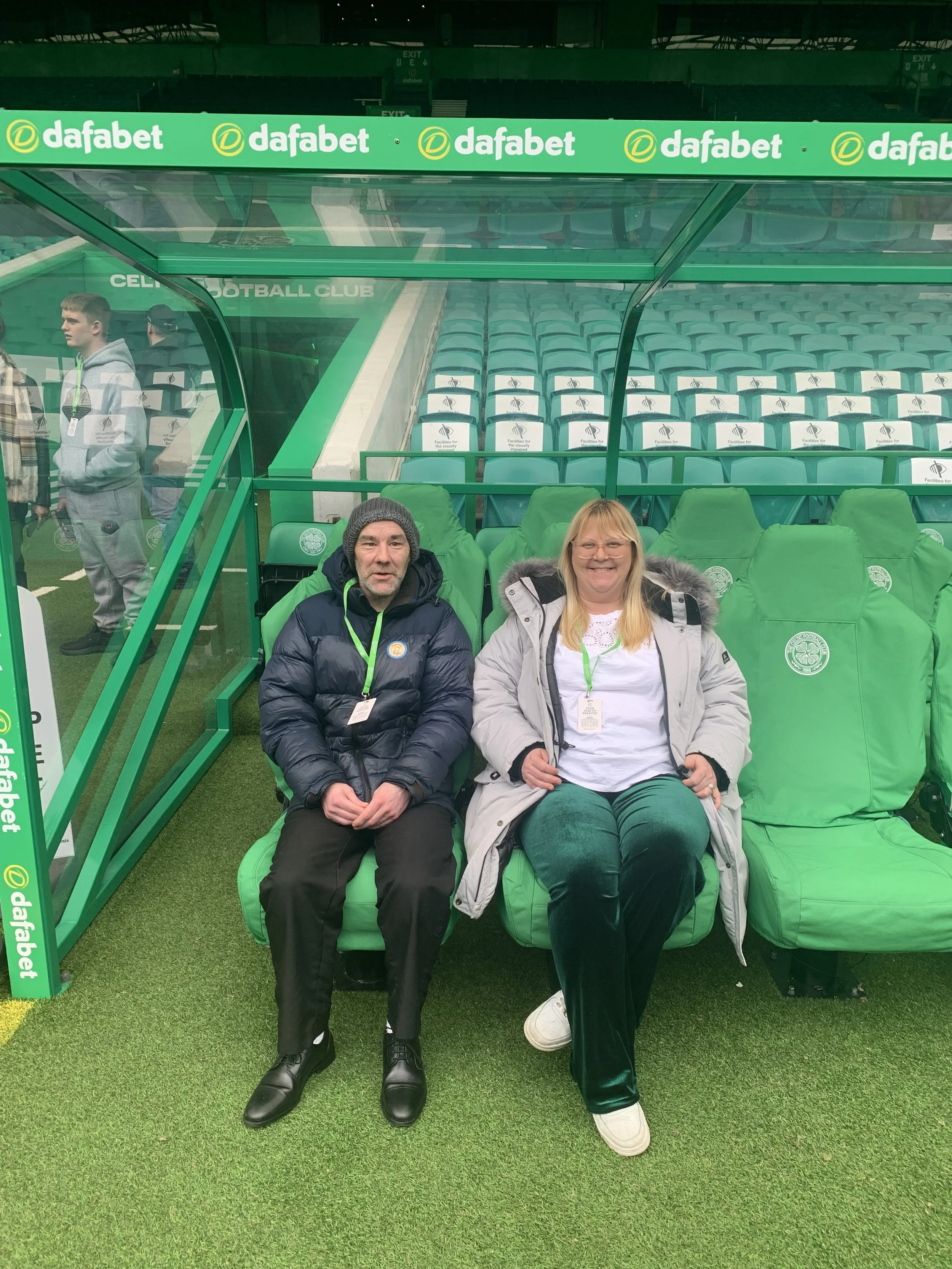 Our coatbridge community session user with our charity lead Susan, enjoying a birthday treat at Celtic Park.
